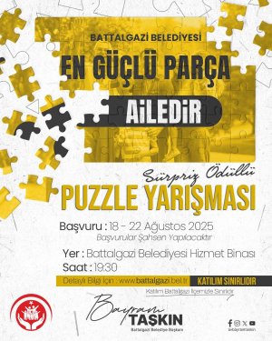 Aile yılı kapsamında bir çok programı hayata geçiren Battalgazi Belediyesi, aile bağlarını arttırmak ve aile içi etkileşimi güçlendirmek için puzzle yarışması düzenleniyor. Aile olarak katılım sağlanacak yarışmada dereceye girenlere çeşitli ödüller verilecek.