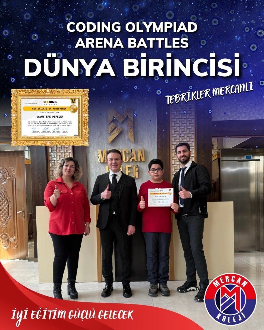 Malatya Mercan Koleji öğrencisi Efe Pepeler, uluslararası kodlama olimpiyatlarında dünya birincisi oldu. Büyük başarı Türkiye’yi gururlandırdı.